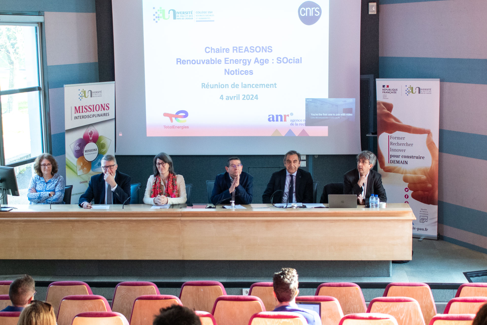 The official launch of the “Renewable Energy Age: Social Notices” (REASONS) industrial research chair took place on Thursday April 4, 2024, on the Pau campus. This collaboration between the Transitions énergétiques et environnementales (TREE) laboratory, joint research unit between University of Pau and Pays de l’Adour and CNRS National Scientific Research Center, and TotalEnergies OneTech R&D Social Performance, is supported by the Agence nationale de la recherche (ANR), with total funding of 1 million euros over 4 years.