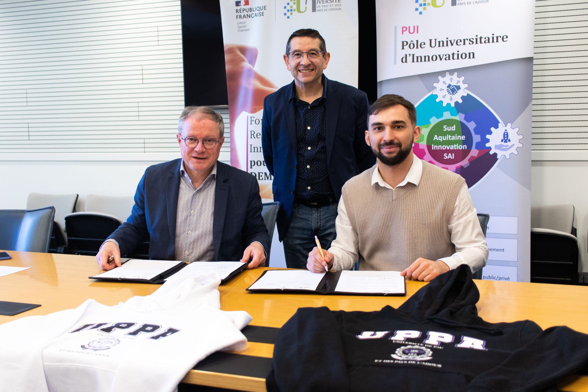Depuis plus d’une dizaine d’années, l’Université de Pau et des Pays de l’Adour accompagne, avec une intensité croissante, les étudiants et les personnels qui souhaitent se lancer dans l’entrepreneuriat. Ce vendredi 19 avril a vu l’aboutissement d’un tel accompagnement avec la signature d’un contrat de licence entre l’université et son ancien étudiant Magomed-Emin Gaziev pour l’utilisation de la marque UPPA sur des tee-shirts et sweat-shirts.