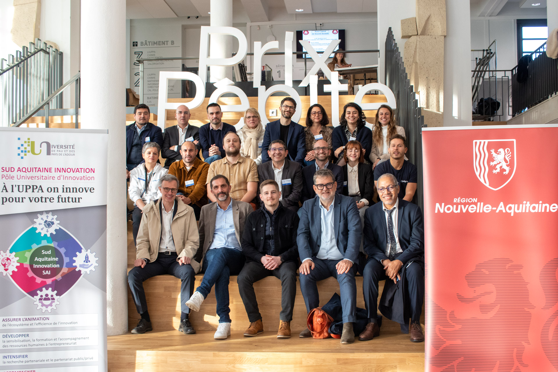 La cérémonie a été ouverte par Laurent Bordes, président de l’UPPA, Cédric Robin, délégué territorial de la banque publique d’investissement Bpifrance, Philippe Grégoire, chargé de mission entrepreneuriat à la Région Nouvelle-Aquitaine représentant Alain Rousset, président du conseil régional, et Dominique Rebière, délégué innovation de la région académique Nouvelle-Aquitaine.