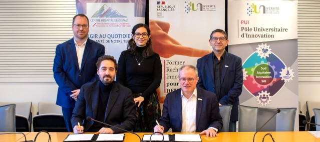 Ils étaient entourés d’Audrey Liort, directrice des affaires médicales, générales et coopérations du CH de Pau, de Morgan Pitte, directeur coordonnateur général des instituts de formation et de la formation continue, de la recherche clinique et de l’innovation du CH de Pau, et de Christophe Derail, vice-président partenariat et innovation de l’UPPA.