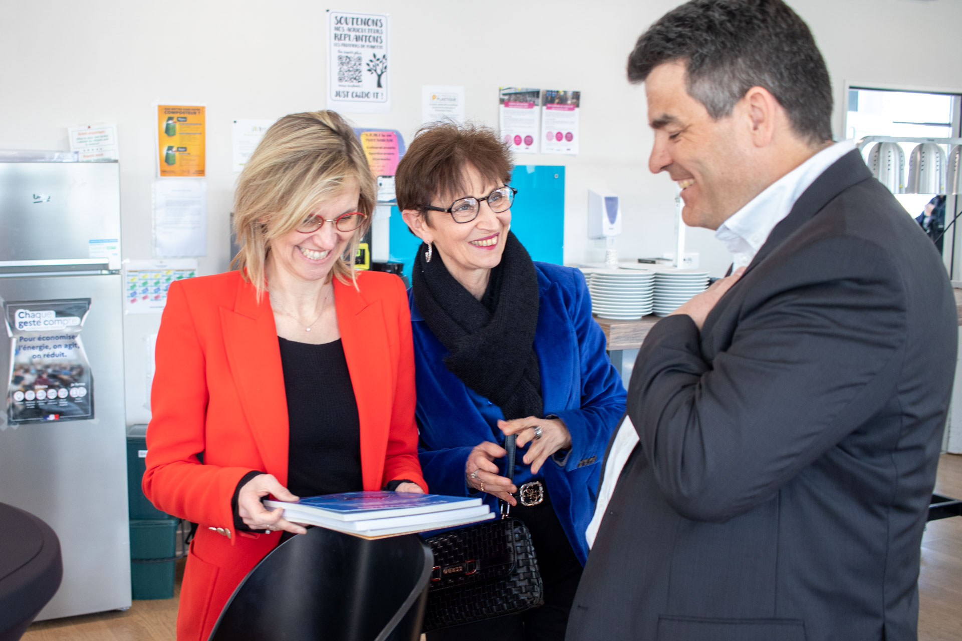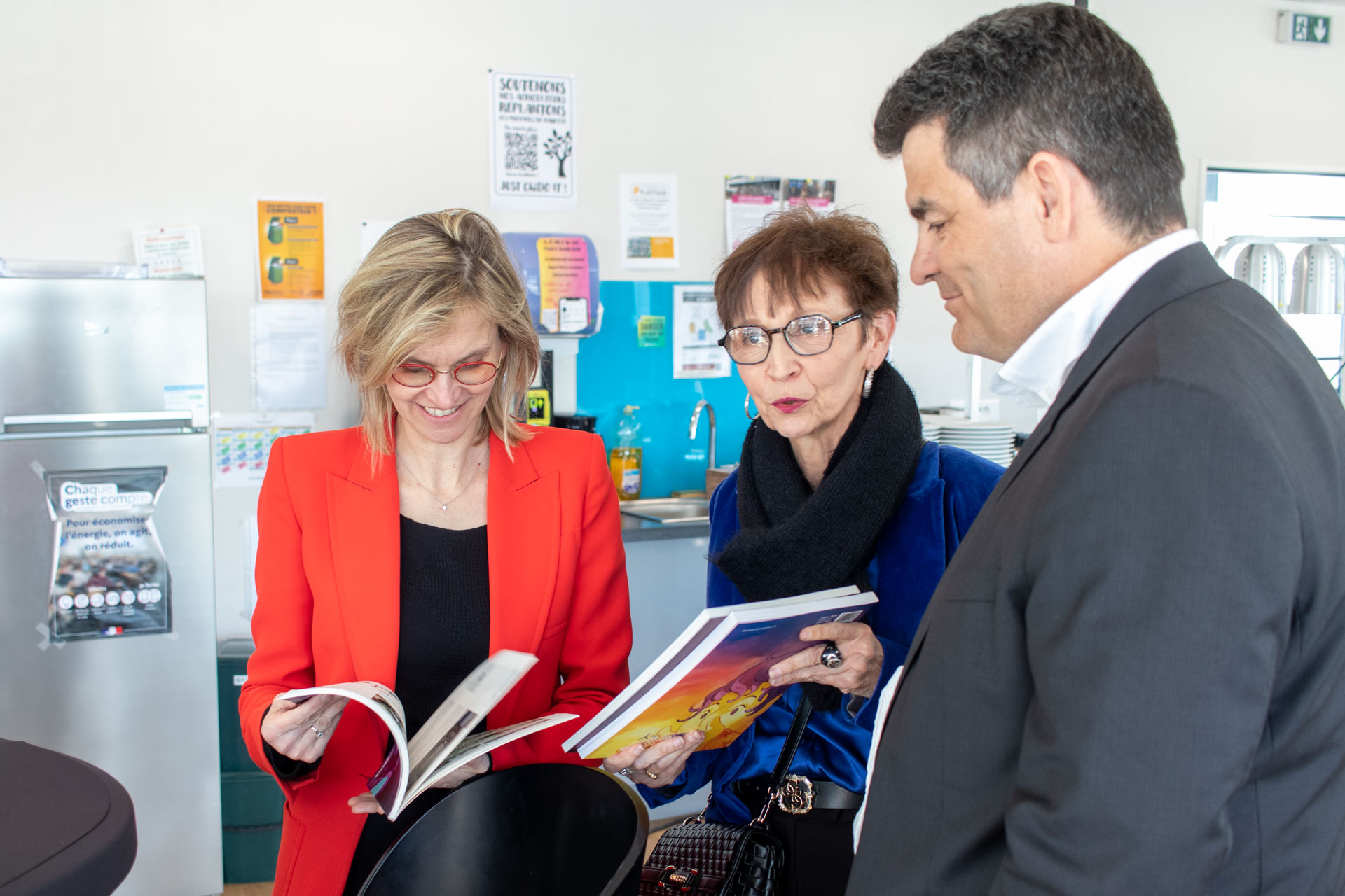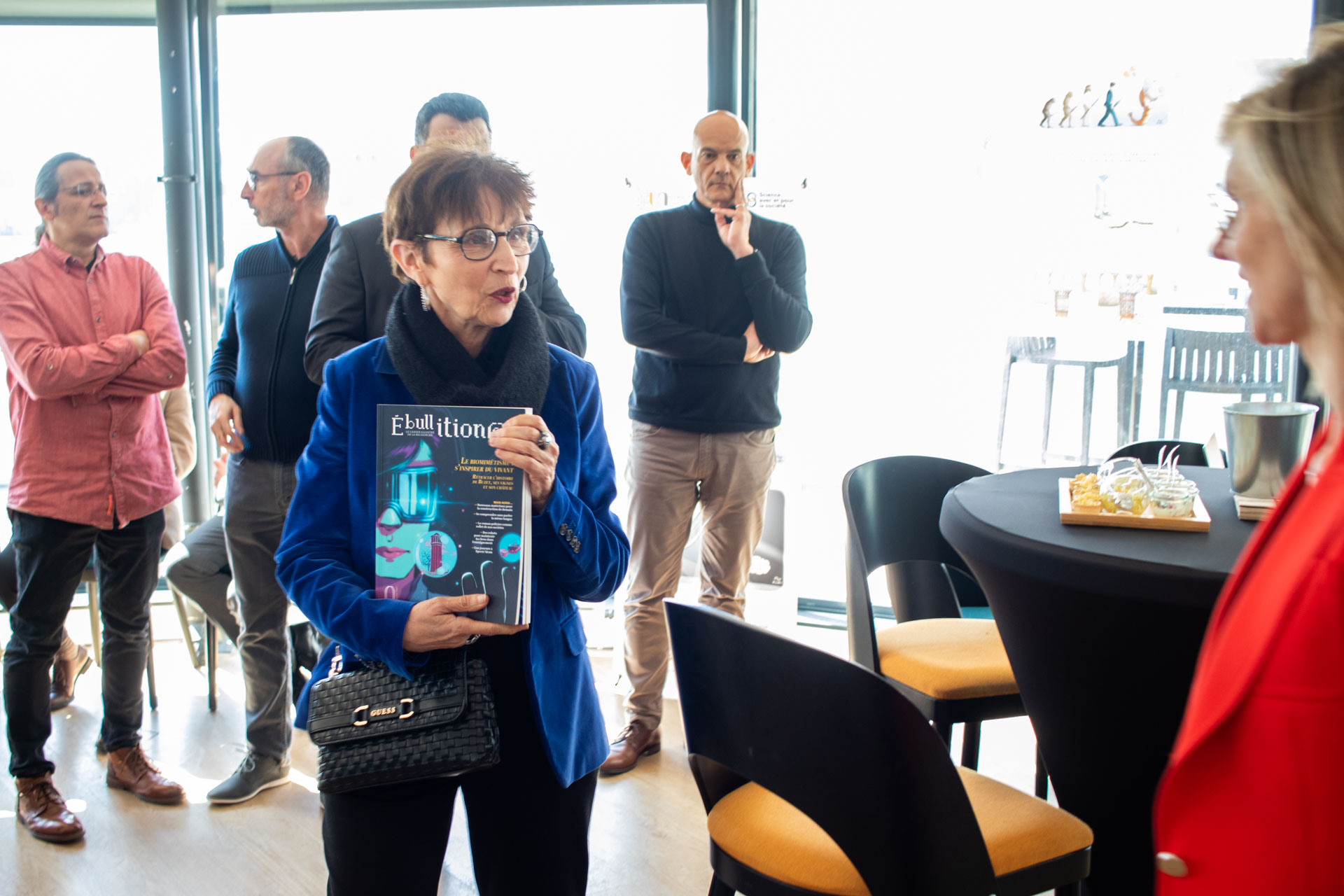 Pour conclure, Isabelle Baraille, référente provisoire Recherche de l’UPPA, et Brice Bouyssiere, référent « Science avec et pour la société », ont offert à la ministre les premiers numéros d’Ébullition(s), le cahier illustré de la recherche, dont le numéro 2 a pour thème les transitions, et plus particulièrement l’économie circulaire et la construction vertueuse.