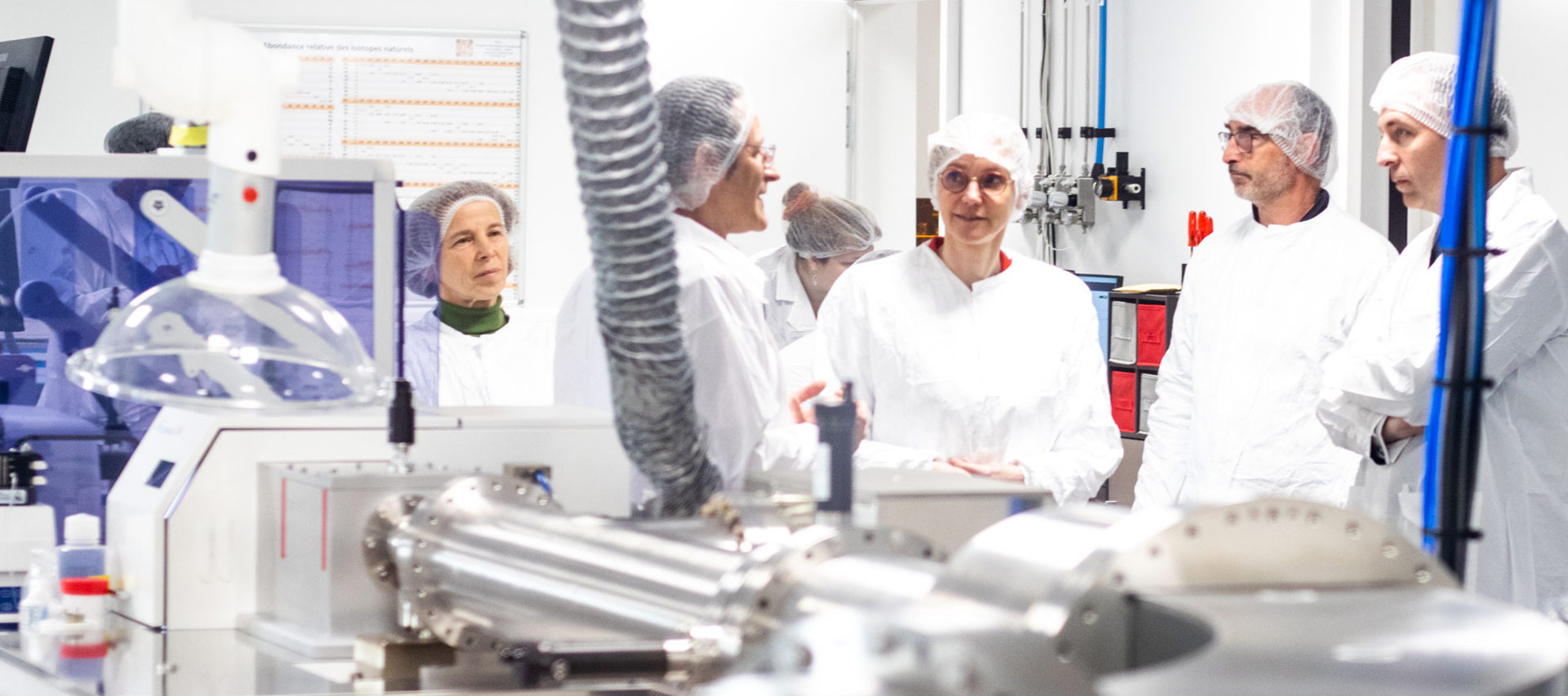 Les chercheurs Christophe Pécheyran, Béatrice Lauga et Gilles Bareille ont d’abord présenté leurs travaux d’imagerie sur la détection d’ultra-traces au sein de la « salle blanche », c’est-à-dire en environnement à contamination contrôlée pour ne pas fausser les mesures. L’équipe travaille dans des domaines variés : le biomédical avec des recherches sur un nouveau diagnostic de la maladie de Lyme, l’archéologie avec des méthodes de datation par imagerie laser permettant de ne pas détruire l’échantillon (coquilles d'escargot ou d’autruche, dents d’aurochs, etc. provenant de sites archéologiques du Moyen Orient ou d’Afrique), et l’environnement avec le suivi de la migration de poissons emblématiques, comme le saumon ou l’anguille, grâce à l’incorporation dans la structure de leur oreille interne (otolithes) d’éléments traces présents dans les eaux dans lesquelles ils sont passés.