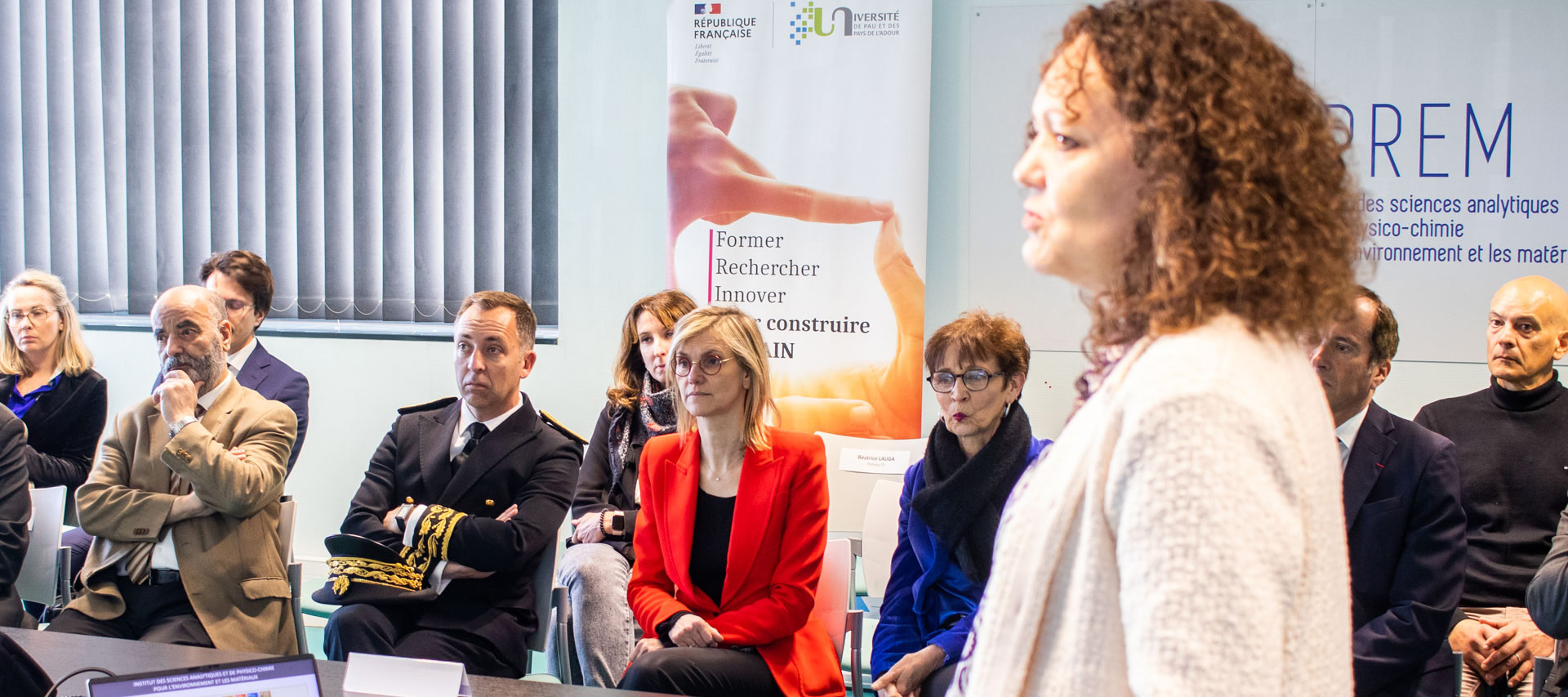 Lors de son déplacement en Béarn le lundi 17 mars 2025, Agnès Pannier-Runacher, ministre de la Transition écologique, de la Biodiversité, de la Forêt, de la Mer et de la Pêche, s’est rendue à l’Université de Pau et des Pays de l’Adour, reconnue au niveau national comme international pour son excellence dans le domaine de la transition énergétique et environnementale. Elle a été accueillie à l’Institut des Sciences Analytiques et de Physico-Chimie pour l’Environnement et les Matériaux (IPREM), unité mixte de recherche UPPA/CNRS.
